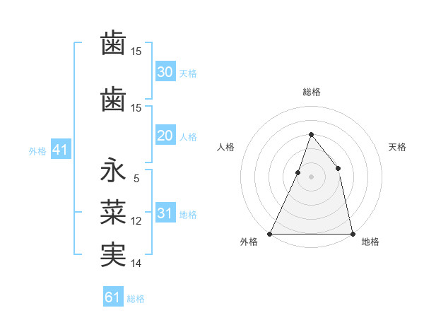 歯歯 永菜実さんの総格は61画の3点!
