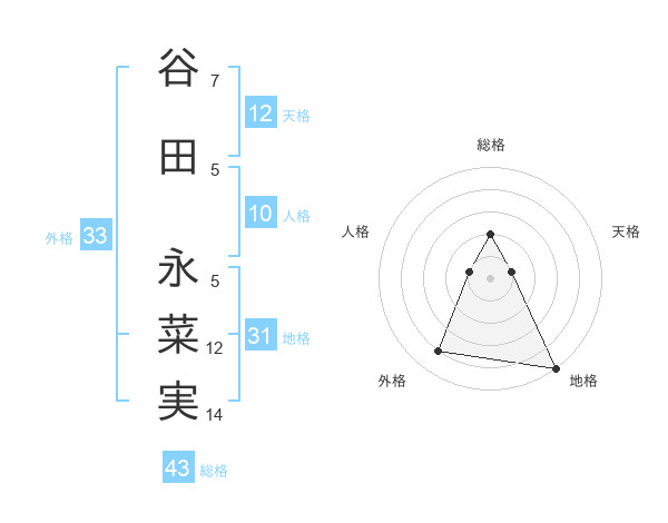 谷田 永菜実さんを姓名の画数から五運を鑑定