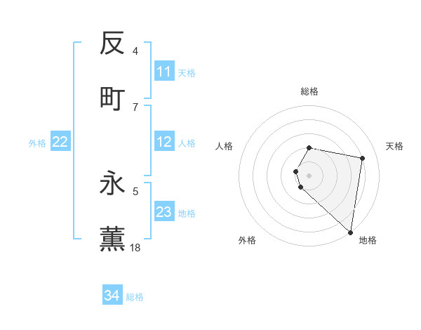 反町 永薫さんの総格は34画の2点!