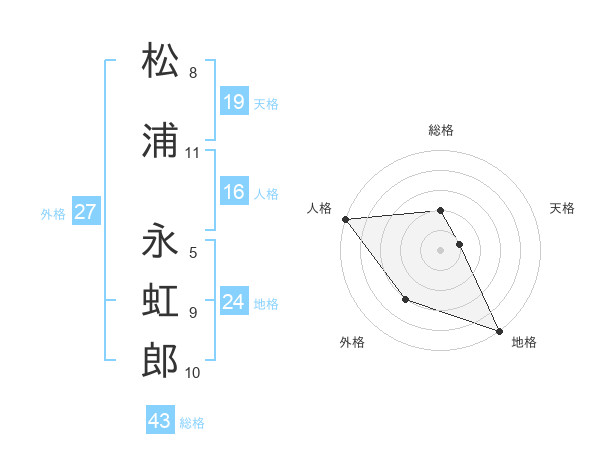 松浦 永虹郎さんを姓名の画数から五運を鑑定