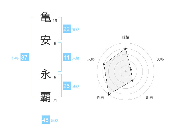 亀安 永覇さんの外格は37画の5点!