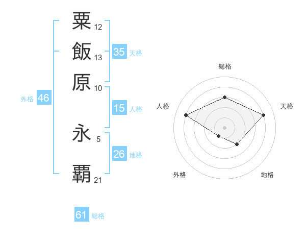 粟飯原 永覇さんの総格は61画の3点!