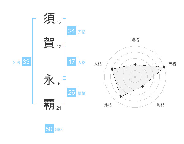 須賀 永覇さんを姓名の画数から五運を鑑定