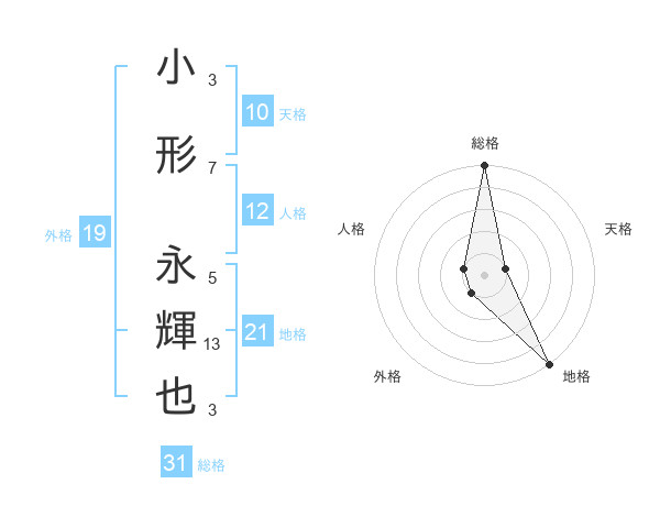小形 永輝也さんの総格は31画の5点!