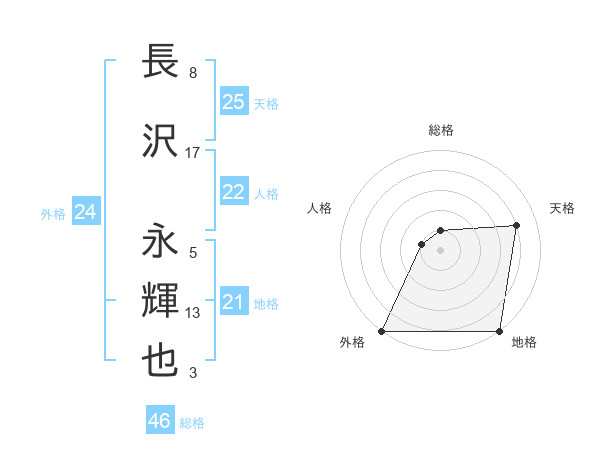 長沢 永輝也さんの外格は24画の5点!