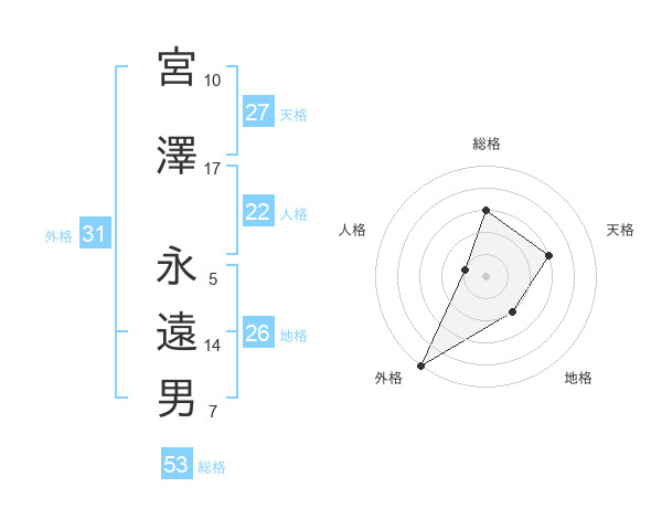 宮澤 永遠男さんの外格は31画の5点!
