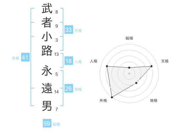 武者小路 永遠男さんを姓名の画数から五運を鑑定