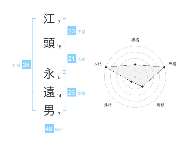 江頭 永遠男さんを姓名の画数から五運を鑑定