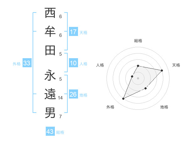西牟田 永遠男さんの天格は17画の4点!