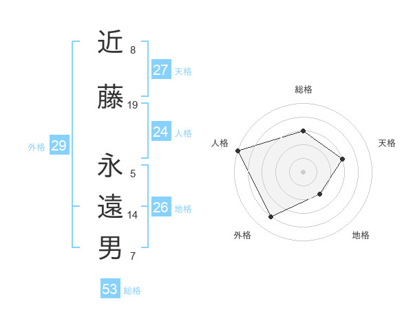 近藤 永遠男さんを姓名の画数から五運を鑑定