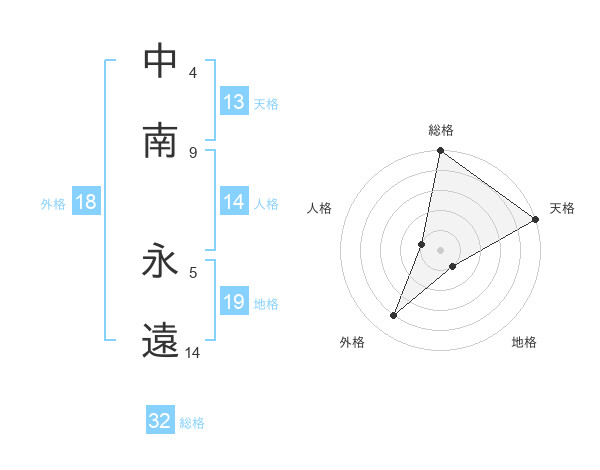 中南 永遠さんの天格は13画の5点!