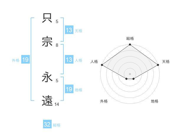 只宗 永遠さんの天格は13画の5点!