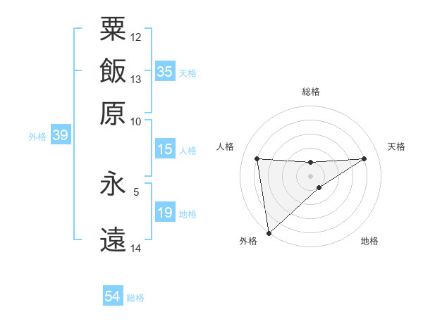 粟飯原 永遠さんを姓名の画数から五運を鑑定