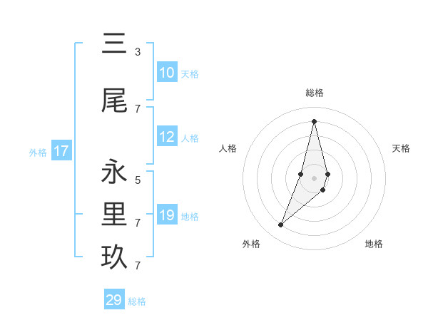 三尾 永里玖さんを姓名の画数から五運を鑑定