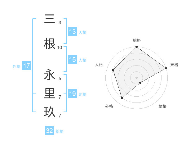 三根 永里玖さんを姓名の画数から五運を鑑定