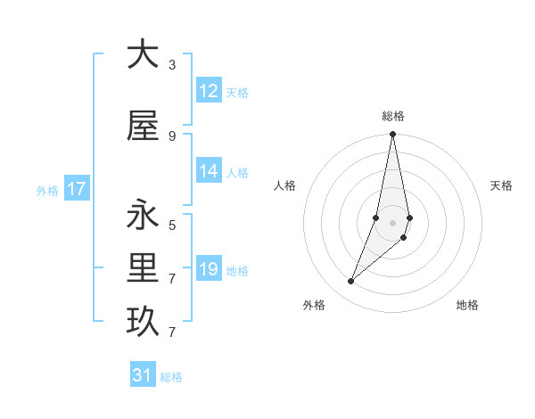 大屋 永里玖さんの総格は31画の5点!