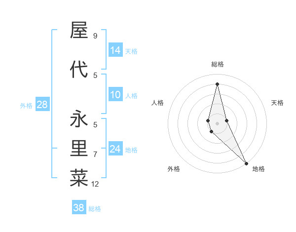 屋代 永里菜さんの総格は38画の4点!