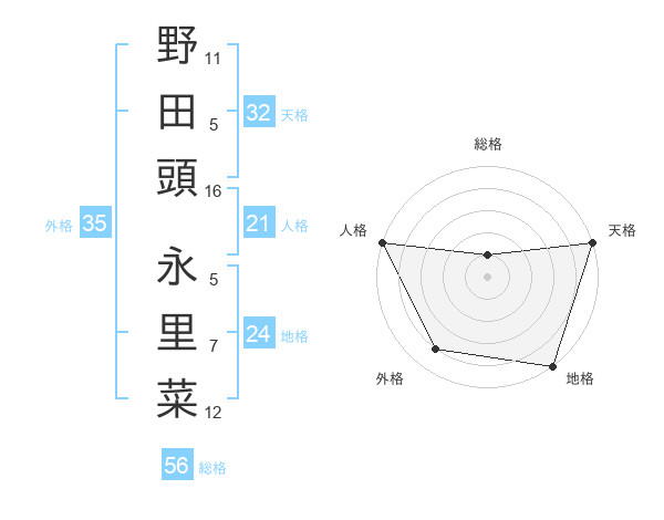 野田頭 永里菜さんの天格は32画の5点!