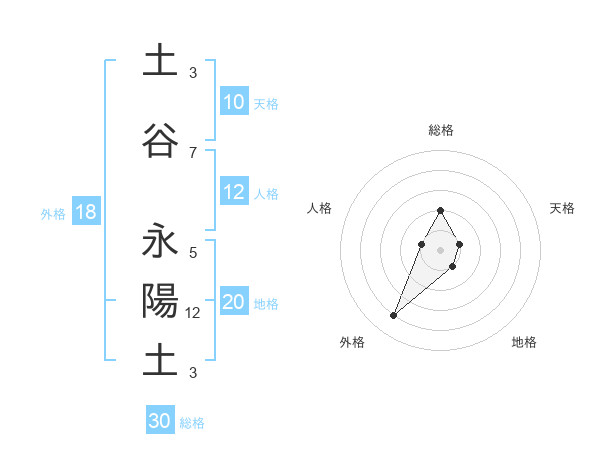 土谷 永陽土さんの総格は30画の2点!