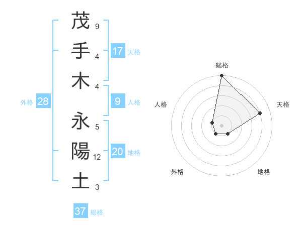 茂手木 永陽土さんの総格は37画の5点!