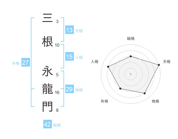 三根 永龍門さんの総格は42画の3点!