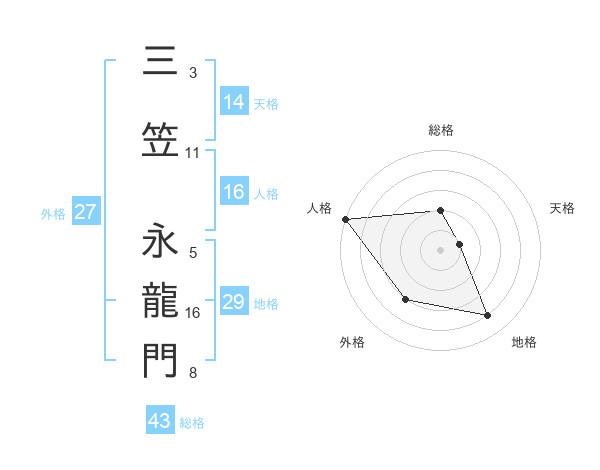 三笠 永龍門さんの総格は43画の2点!
