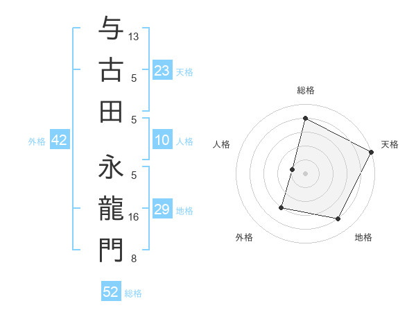 与古田 永龍門さんを姓名の画数から五運を鑑定