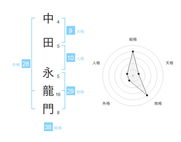 中田 永龍門さんを姓名の画数から五運を鑑定