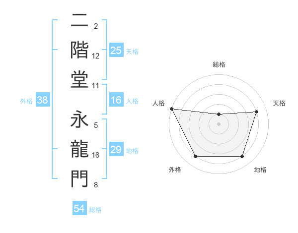 二階堂 永龍門さんを姓名の画数から五運を鑑定