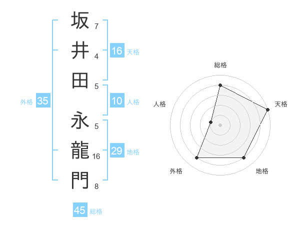 坂井田 永龍門さんを姓名の画数から五運を鑑定
