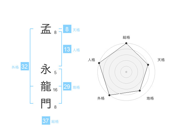 孟 永龍門さんを姓名の画数から五運を鑑定