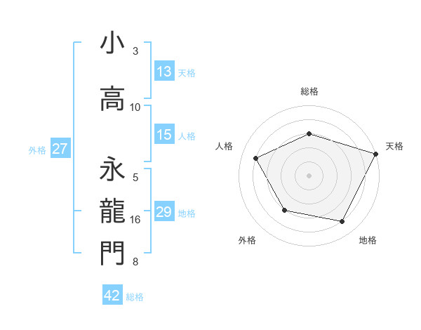 小高 永龍門さんの天格は13画の5点!