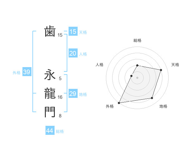 歯 永龍門さんを姓名の画数から五運を鑑定
