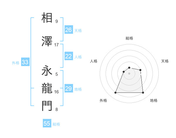 相澤 永龍門さんの総格は55画の1点!