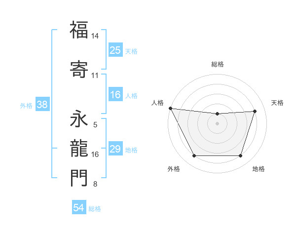 福寄 永龍門さんの外格は38画の4点!