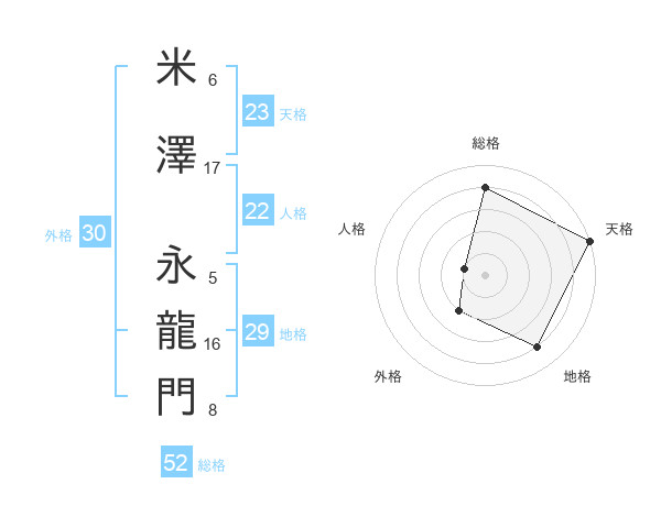 米澤 永龍門さんを姓名の画数から五運を鑑定