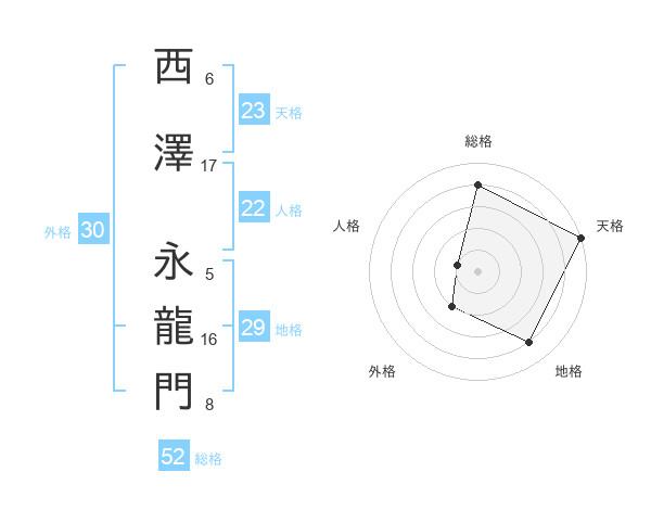 西澤 永龍門さんを姓名の画数から五運を鑑定