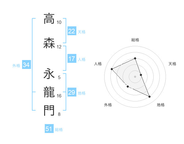 高森 永龍門さんを姓名の画数から五運を鑑定