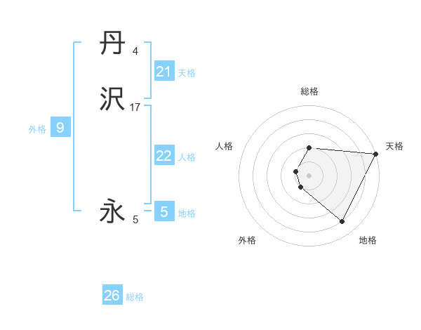 丹沢 永さんの総格は26画の2点!