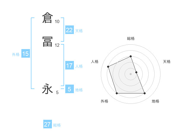 倉冨 永さんの総格は27画の3点!