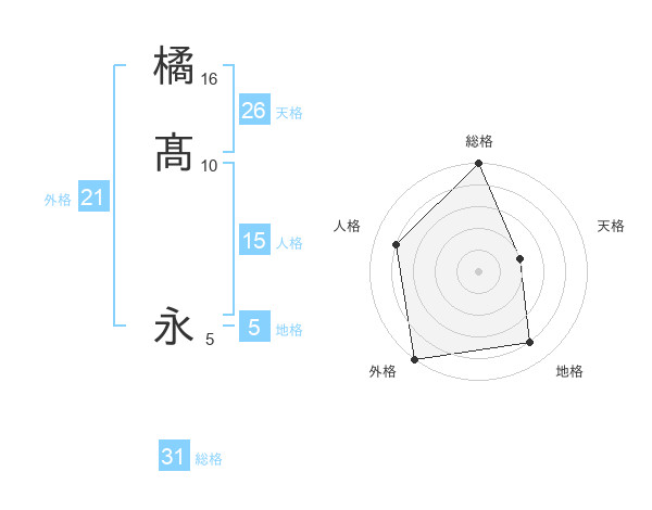 橘髙 永さんの外格は21画の5点!
