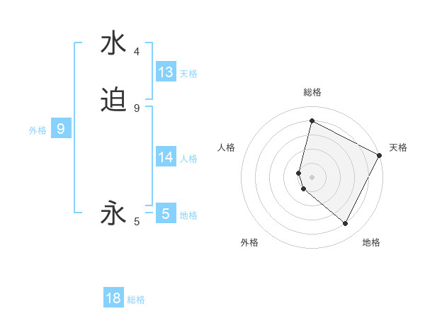 水迫 永さんの天格は13画の5点!