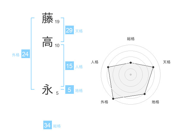 藤高 永さんの総格は34画の2点!