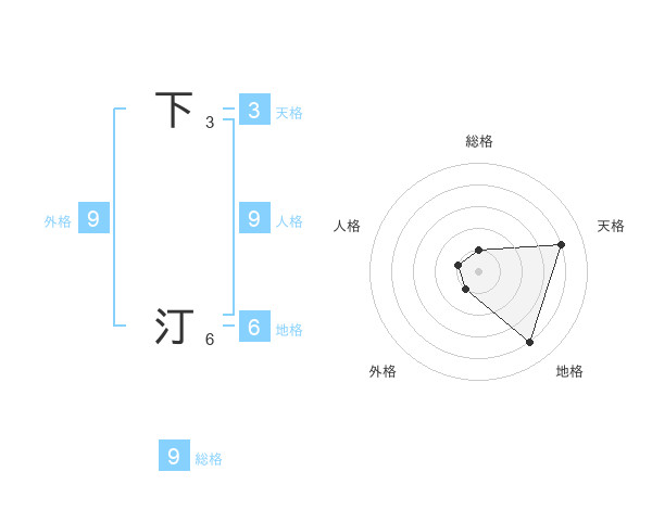 下 汀さんの総格は9画の1点!