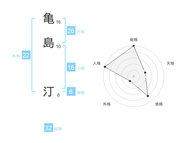亀島 汀さんの総格は32画の5点!