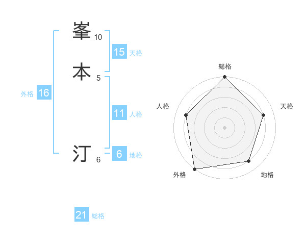 峯本 汀さんの総格は21画の5点!