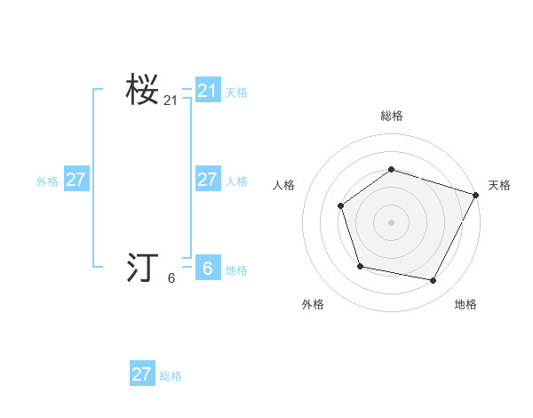 桜 汀さんの総格は27画の3点!