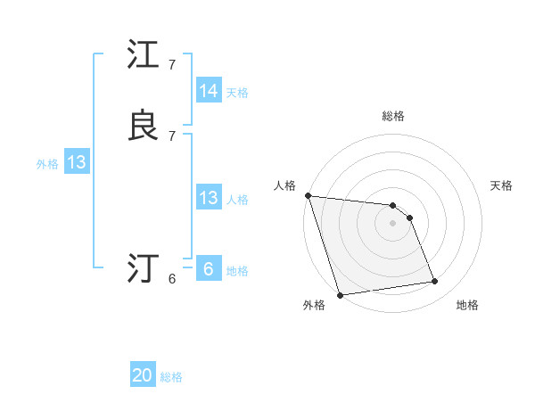 江良 汀さんの外格は13画の5点!