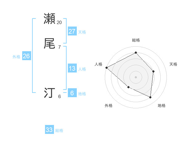 瀬尾 汀さんを姓名の画数から五運を鑑定