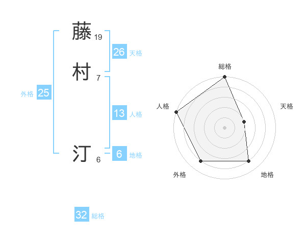 藤村 汀さんの総格は32画の5点!